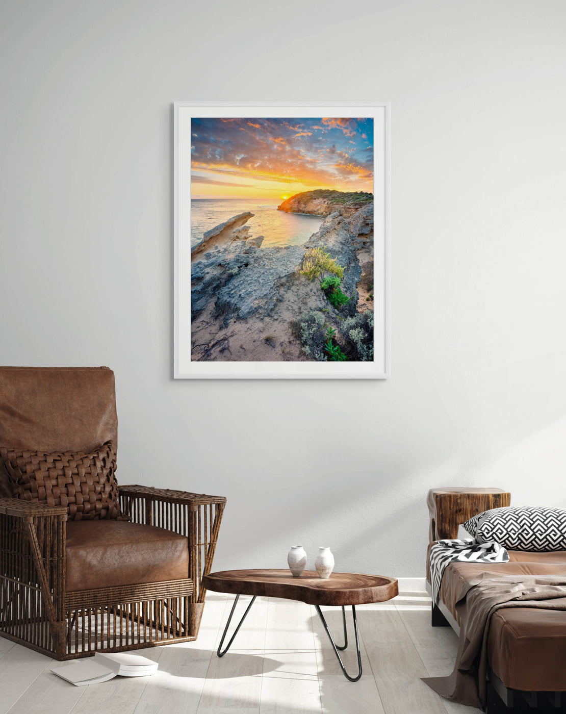 Every piece of art you receive is a testament to quality craftsmanship, born and made right here in Australia. Our premium prints are produced on fine art archival-grade paper, ensuring the vibrant colours of each landscape will stay brilliant for decades. The art is then meticulously framed by an Australian framer with over 35 years of expertise. Each frame is truly a handcrafted masterpiece, made from sustainably sourced, premium timber and finished with UV protection to safeguard your art for years to come.