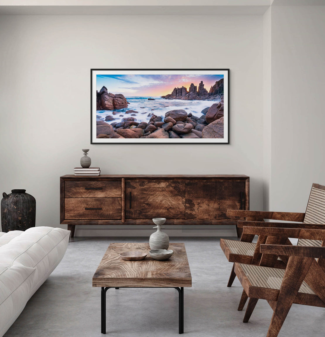 Every piece of art you receive is a testament to quality craftsmanship, born and made right here in Australia. Our premium prints are produced on fine art archival-grade paper, ensuring the vibrant colours of each landscape will stay brilliant for decades. The art is then meticulously framed by an Australian framer with over 35 years of expertise. Each frame is truly a handcrafted masterpiece, made from sustainably sourced, premium timber and finished with UV protection to safeguard your art for years to come.