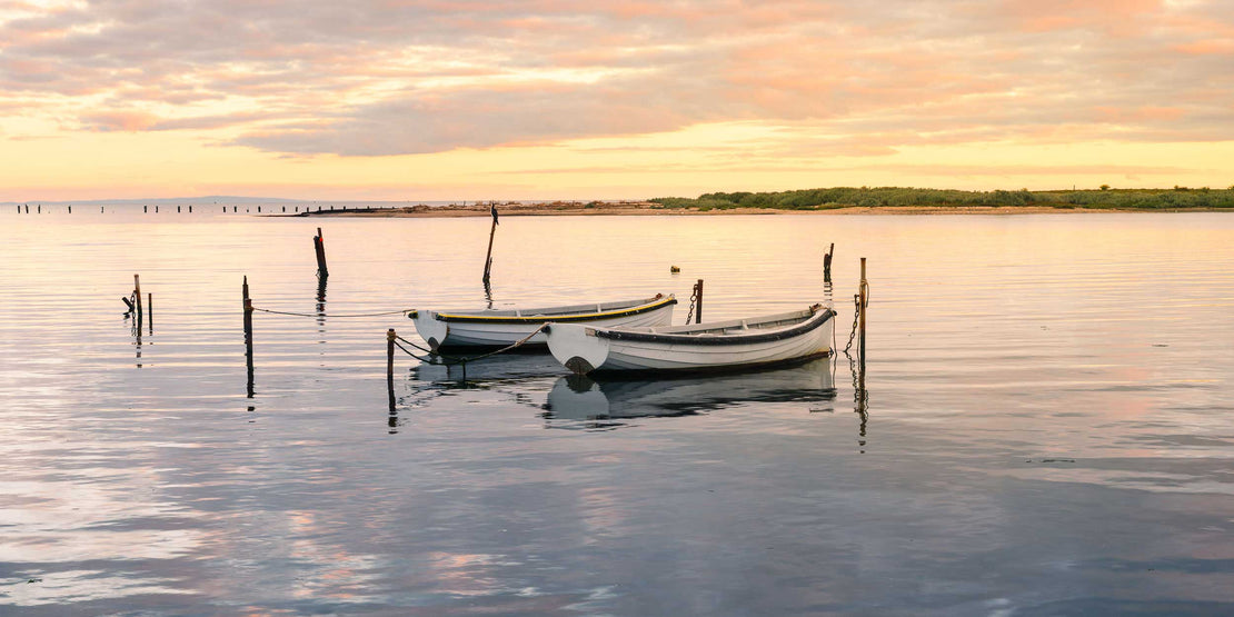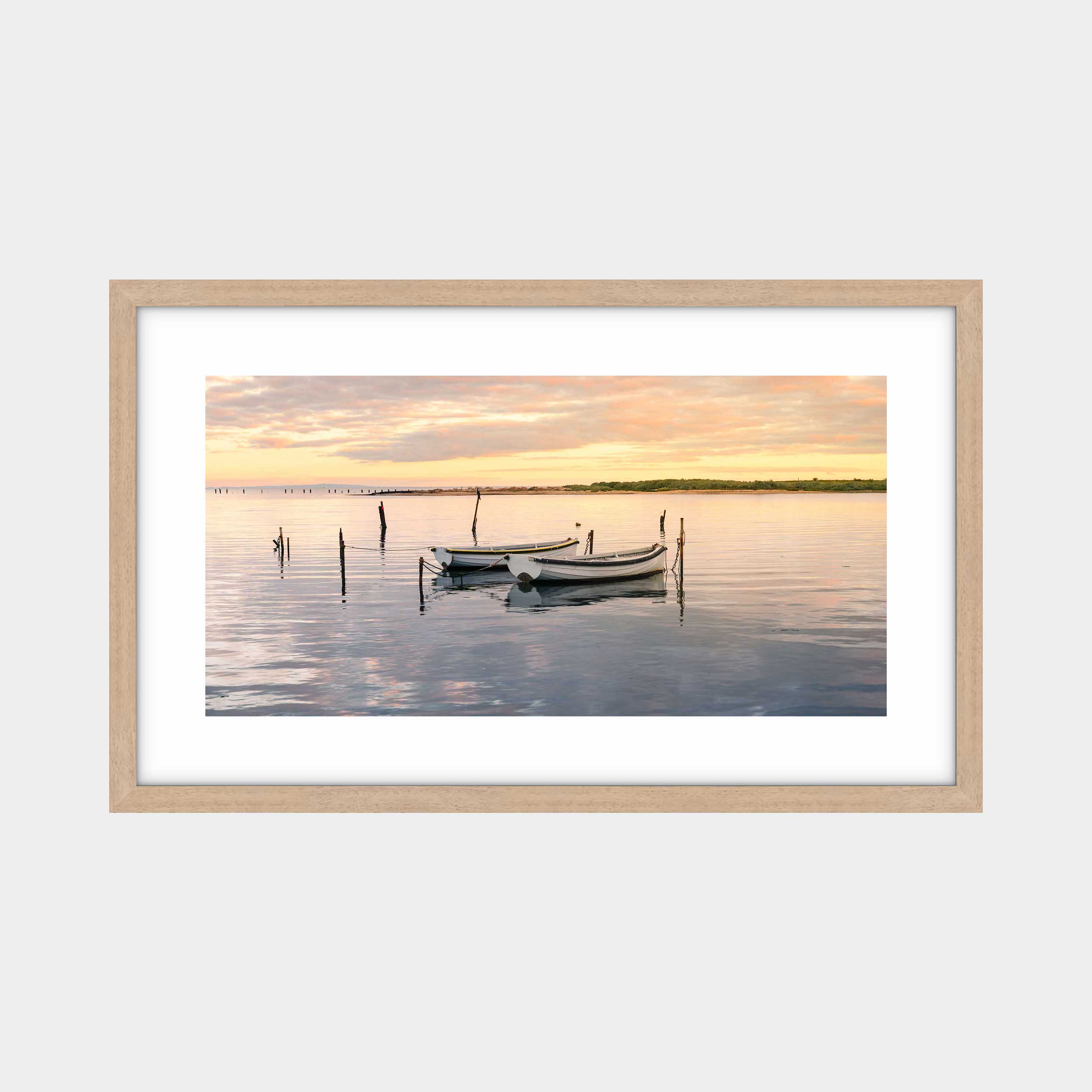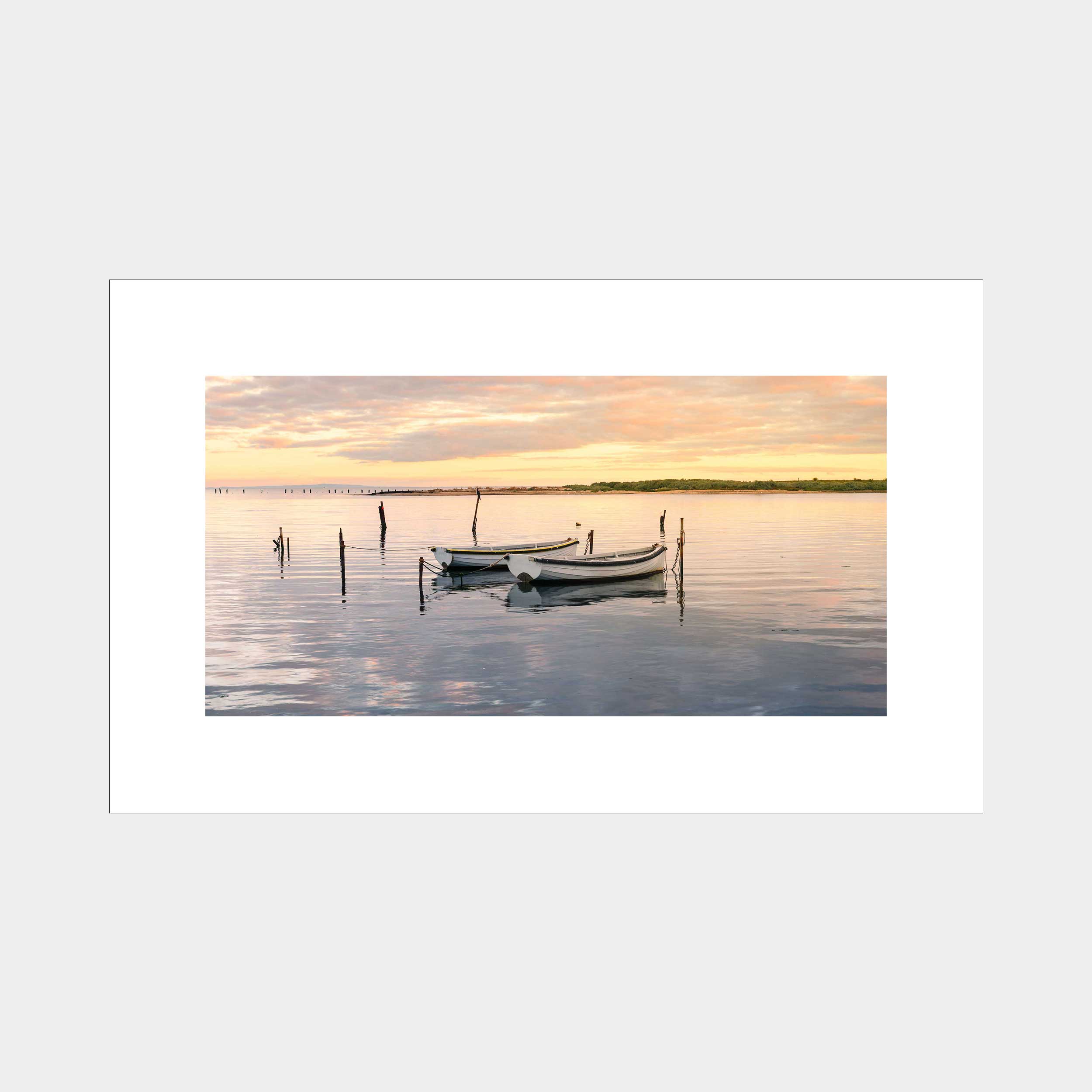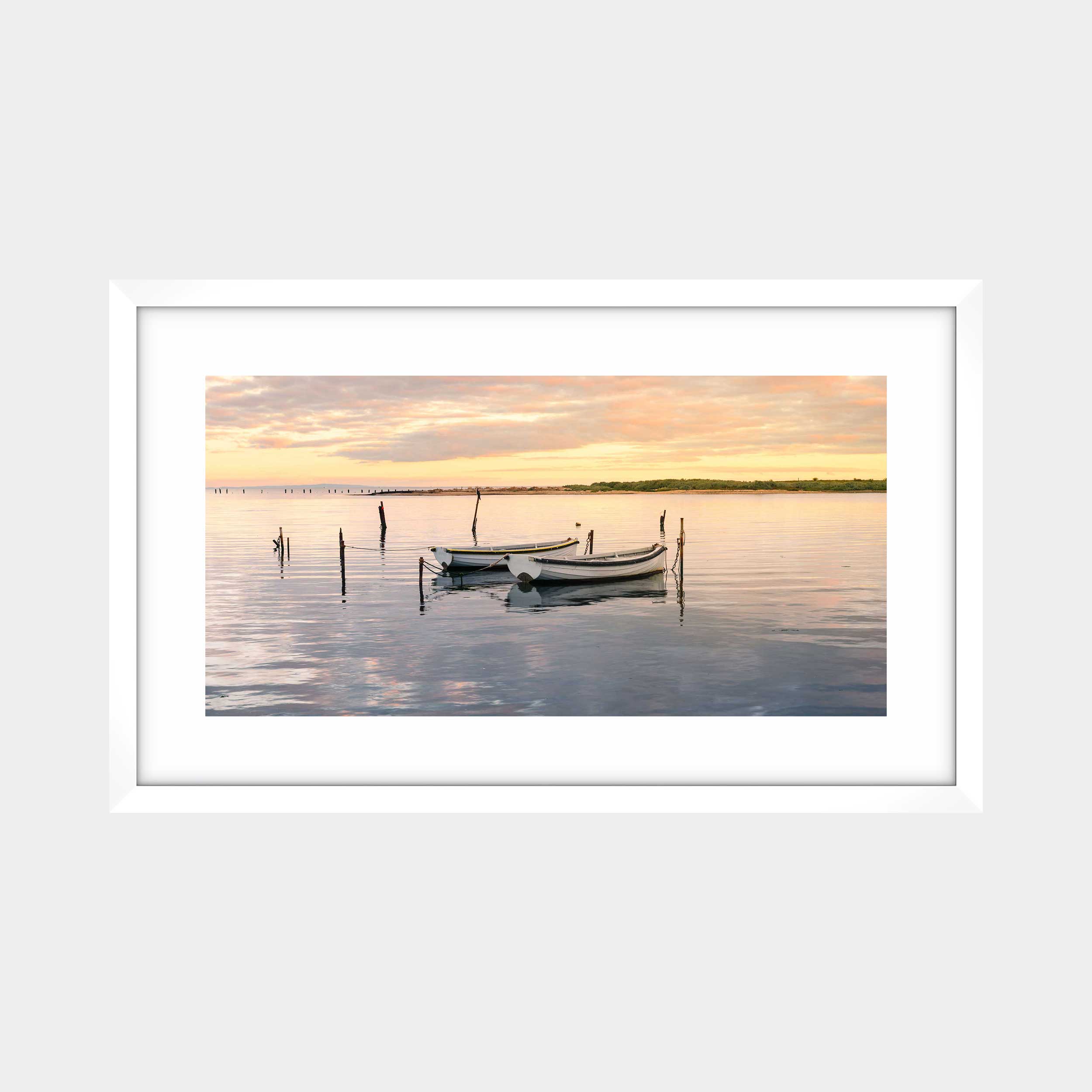 "Werribee's Gentle Anchorage" captures the serene beauty of Werribee Beach, Victoria, as two small boats rest peacefully on the calm waters under a soft, pre-dawn or post-sunset sky. This photograph, bathed in delicate pastel hues, evokes a sense of tranquil simplicity and the quiet charm of a local coastal haven, inviting viewers to a moment of stillness and reflection.